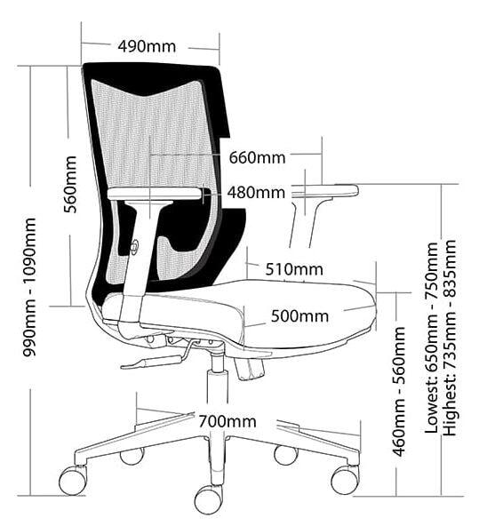 •  600mm black nylon 5 star base