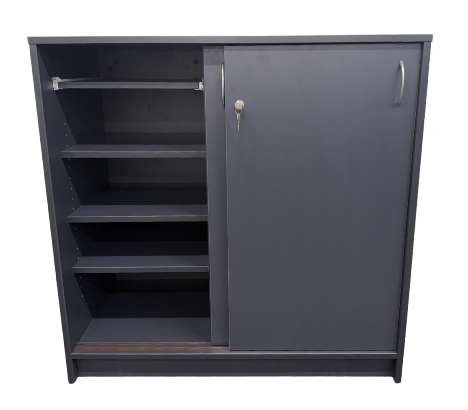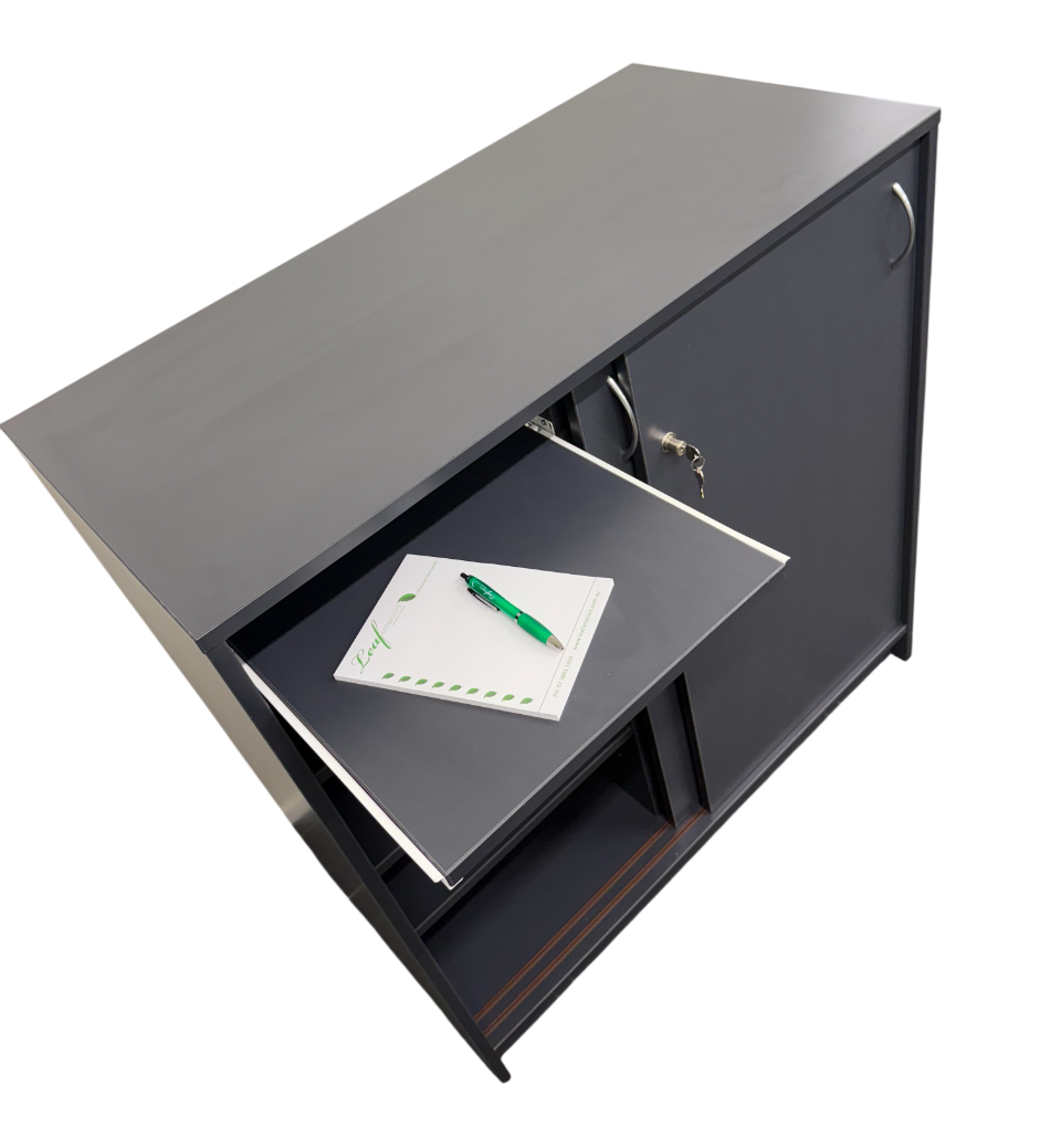 - LHS: 1 x Pull out shelf to house book register, with 2 x Adjustable Shelves underneath